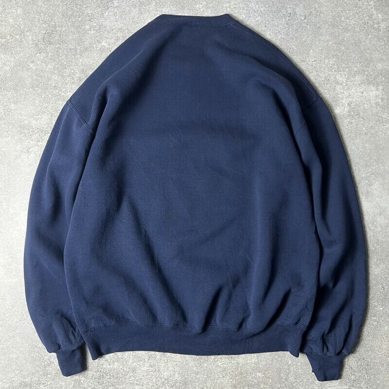 90s USA製 RUSSELL 企業 ロゴ 刺繍 前V スウェット トレーナー XL / 90年代 アメリカ製 オールド ラッセル ネイビー