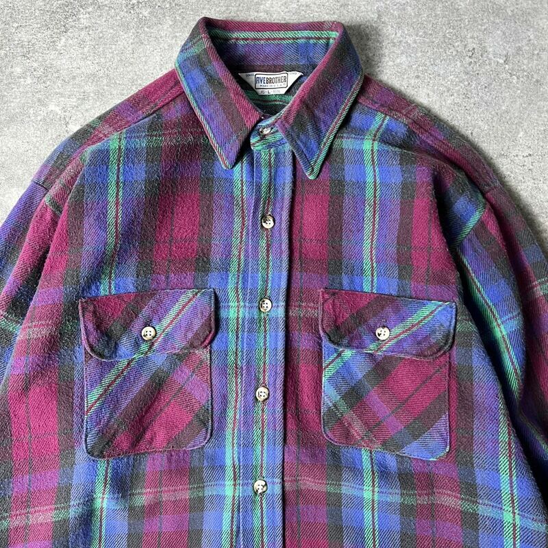 70s 80s USA製 FIVE BROTHER チェック 長袖 ヘビー フランネル シャツ L / 70年代 80年代 アメリカ製 ビンテージ ネルシャツ