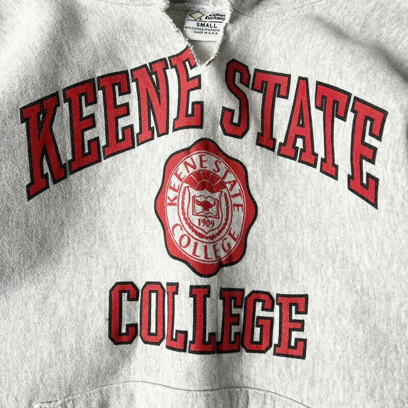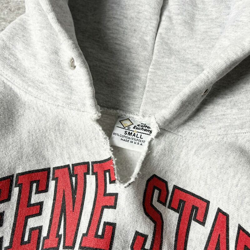 90s USA製 Cotton Exchange 3段 カレッジ プリント RWタイプ スウェット フード パーカー S / 90年代 アメリカ製 トレーナー