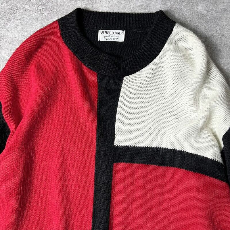 80s USA製 Alfred Dunner パネル 切替 アクリル ニット セーター XL / 80年代 ビンテージ アメリカ製 マルチカラー