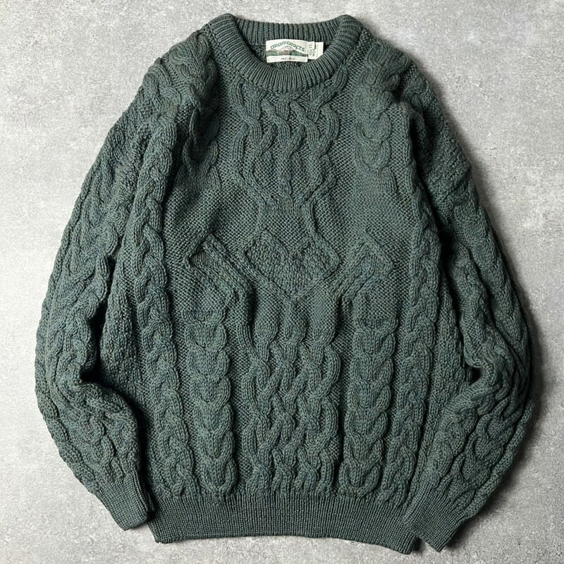 アイルランド製 aran crafts ウール フィッシャーマン ニット セーター XXL / アランクラフト アラン グリーン 無地