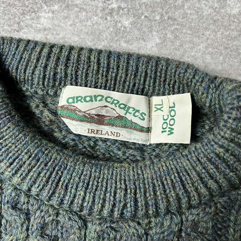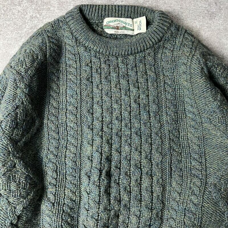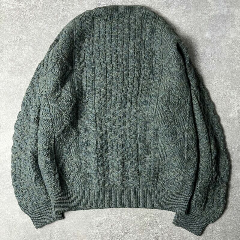 アイルランド製 aran crafts ウール フィッシャーマン ニット セーター XL / アランクラフト アラン グリーン 無地