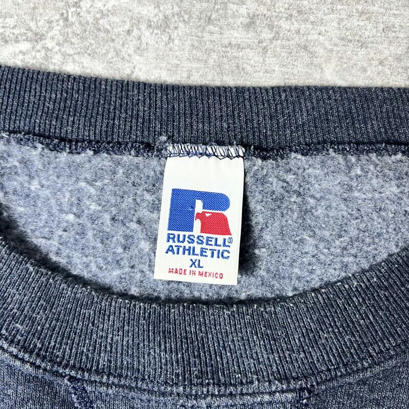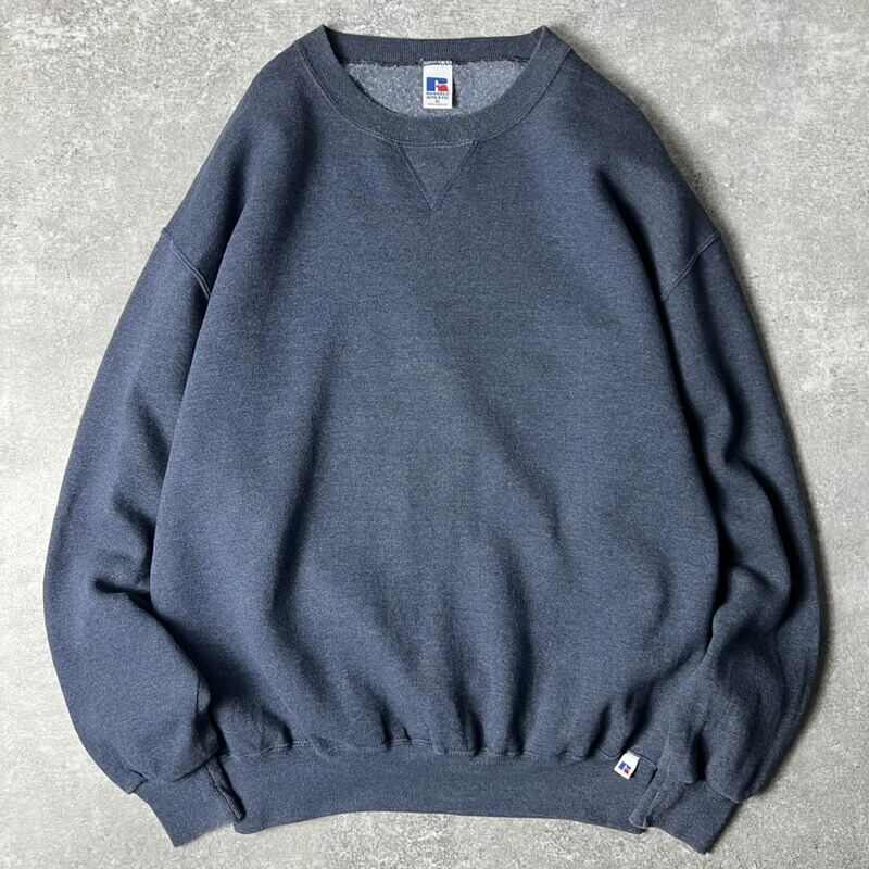 90s RUSSELL 無地 前V スウェット トレーナー XL / 90年代 オールド ラッセル 裏起毛 ネイビー スエット