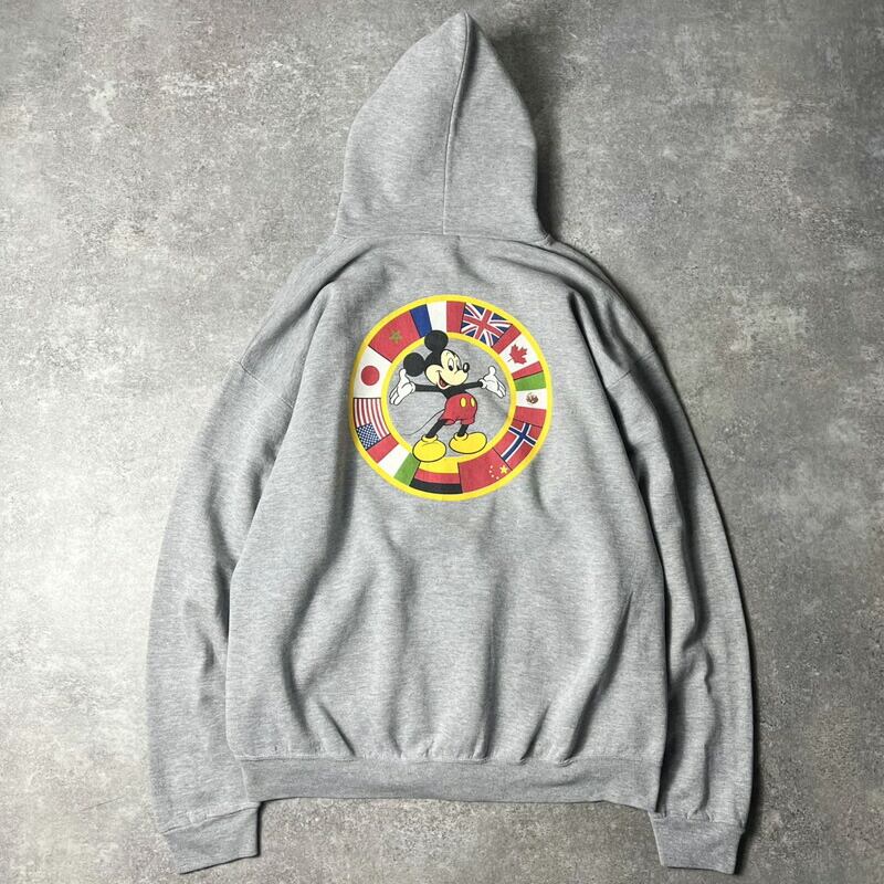 90s ディズニー オフィシャル EPCOT ミッキー プリント フルジップ スウェット フード パーカー / 90年代 オールド キャラクター トレーナー