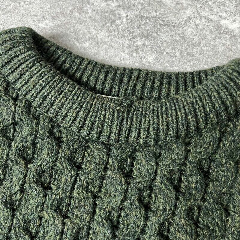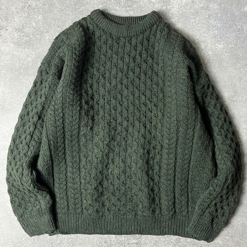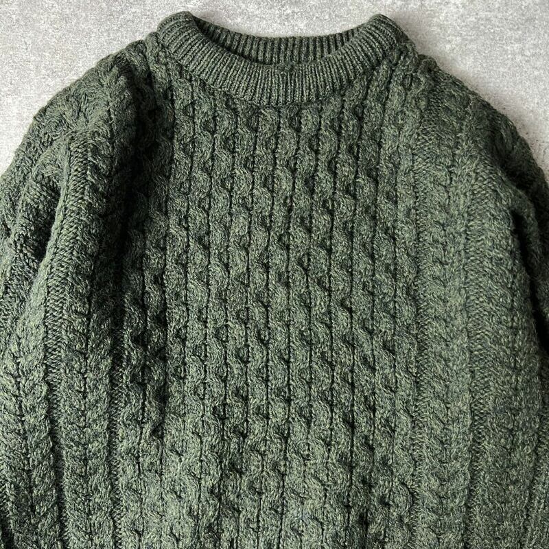 アイルランド製 aran crafts メリノ ウール フィッシャーマン ニット セーター M / アランクラフト アラン グリーン 無地