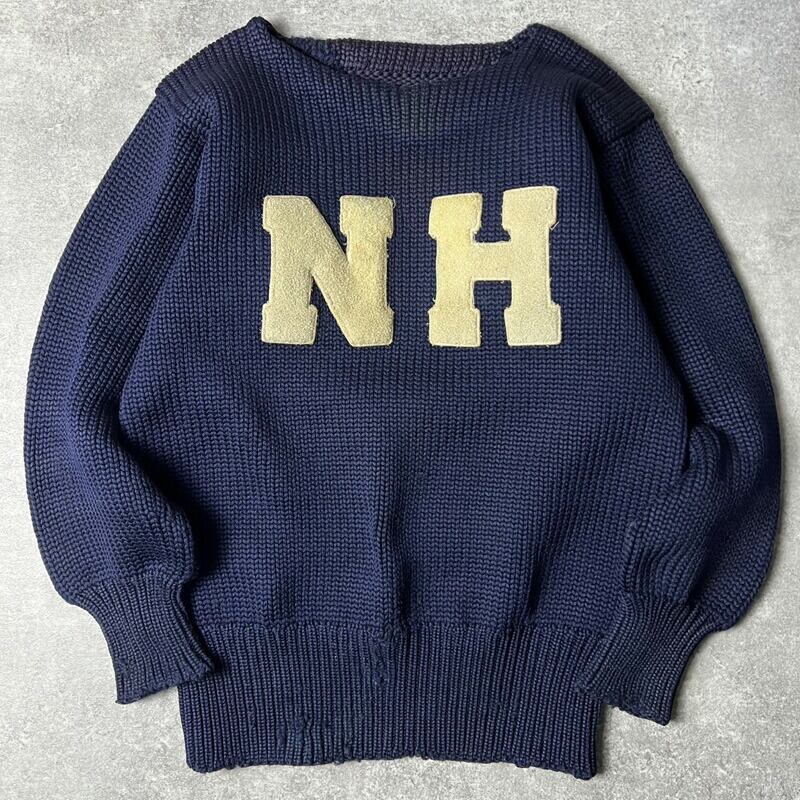 ビンテージのレタードセーター独特の目の詰まったウールニット素材