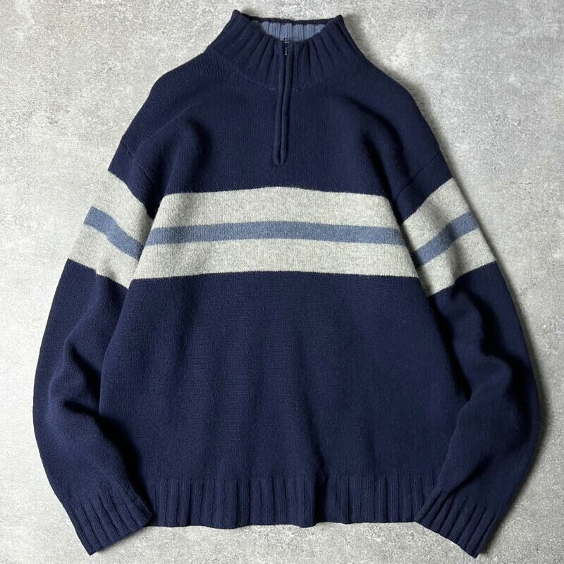00s GAP ボーダー ハーフジップ プルオーバー ラムウール ニット セーター XL / 00年代 オールド ギャップ ネイビー ウール ハイネック