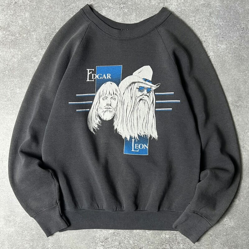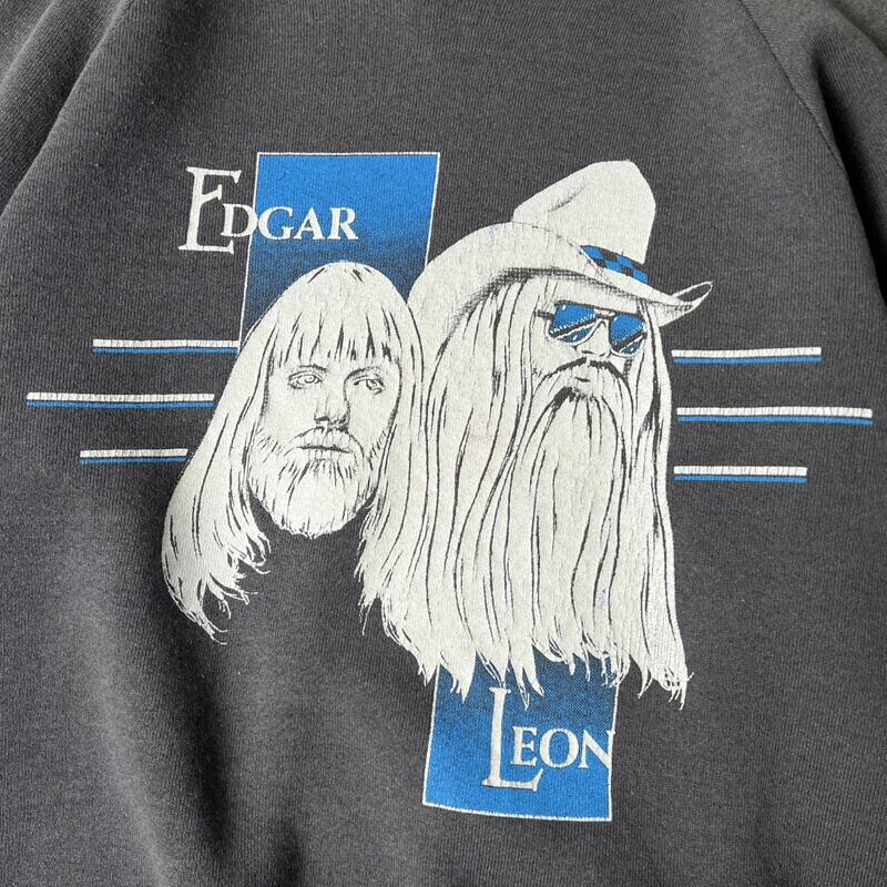 90s USA製 エドガー ウィンター & レオン ラッセル プリント スウェット トレーナー M / 90年代 アメリカ製 オールド ブラック バンド 墨黒