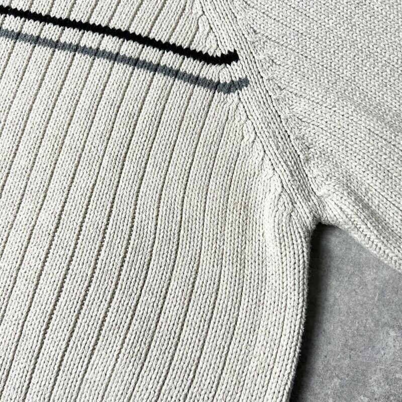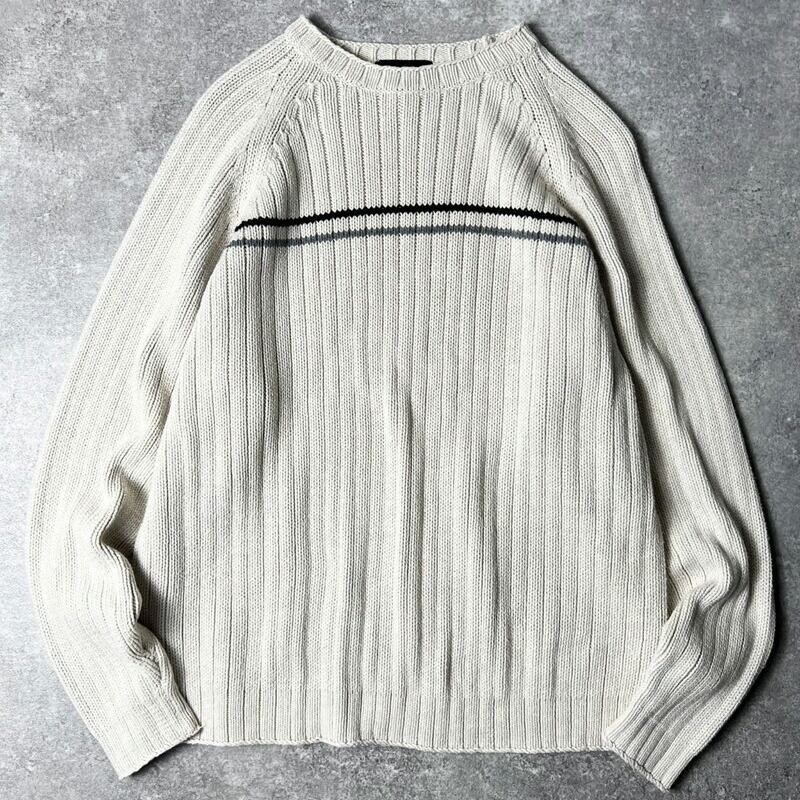 00s Eddie Bauer モックネック ライン入り コットン ニット セーター L / 00年代 オールド エディーバウアー ナチュラル