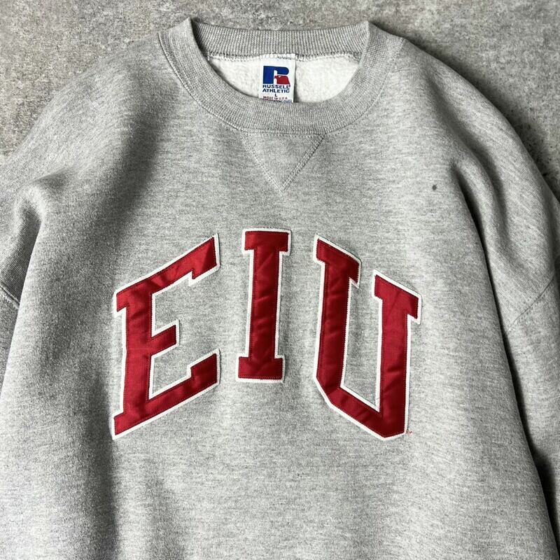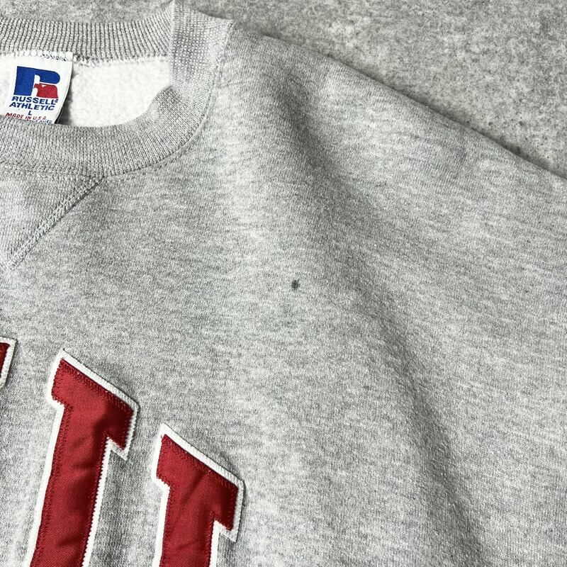 90s USA製 RUSSELL カレッジ ロゴ パッチ スウェット トレーナー L / 90年代 アメリカ製 オールド ラッセル グレー スエット