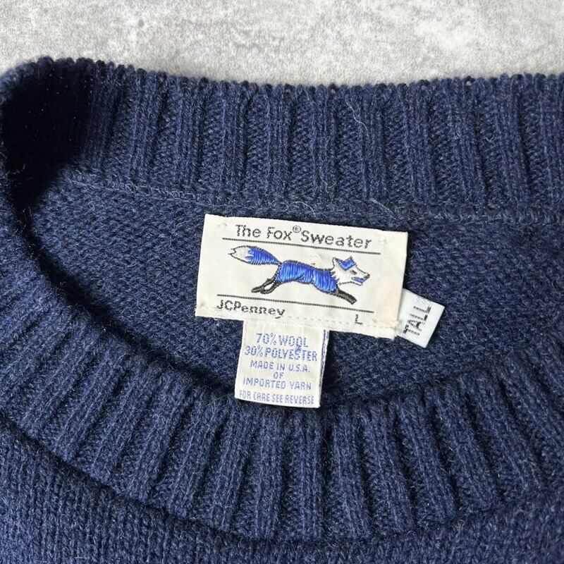 80s USA製 THE FOX 無地 ウール ニット セーター L / 80年代 JCPenney JCペニー アメリカ製 ビンテージ ネイビー 紺