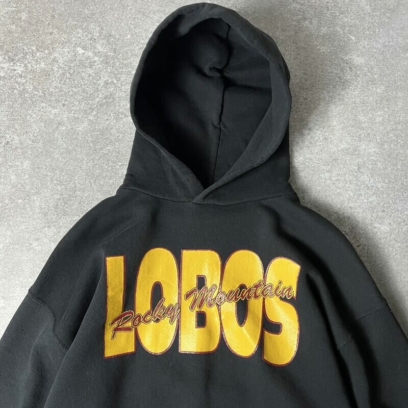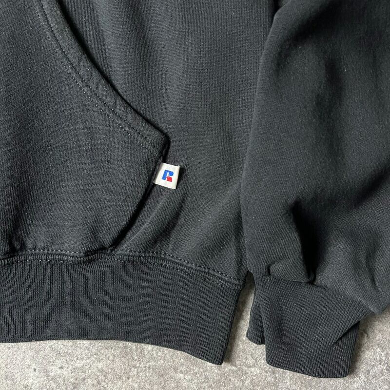 90s RUSSELL ロゴ プリント スウェット フード パーカー L / 90年代 オールド ラッセル トレーナー ブラック 黒