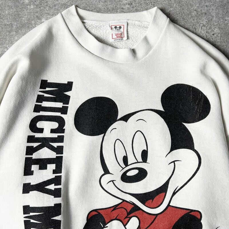 80s USA製 ディズニー オフィシャル 両面 ミッキー プリント スウェット トレーナー / 80年代 アメリカ製 ビンテージ キャラクター ホワイト
