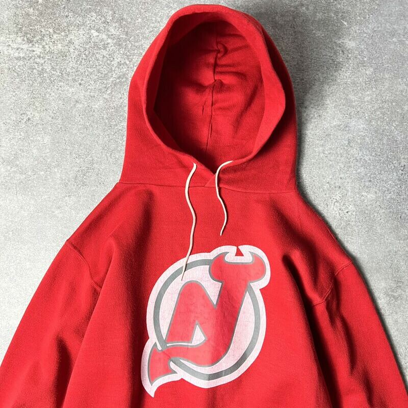 70s 80s 金タグ USA製 RUSSELL NHL ニュージャージー デビルス プリント スウェット フード パーカー M / 70年代 80年代 ビンテージ ラッセル