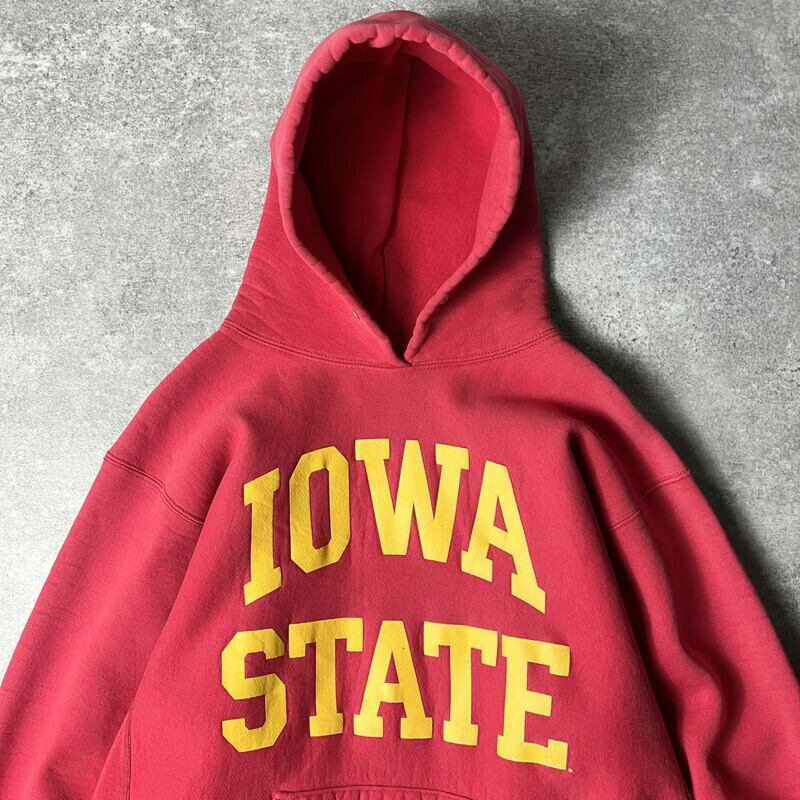 90s USA製 Cotton Exchange 2段 カレッジ プリント RWタイプ スウェット フード パーカー L / 90年代 アメリカ製 リバース トレーナー