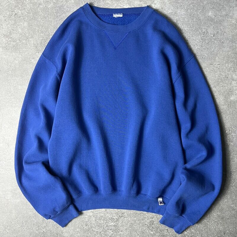00s RUSSELL 無地 前V スウェット トレーナー / 00年代 オールド ラッセル 裏起毛 ブルー 青 スエット