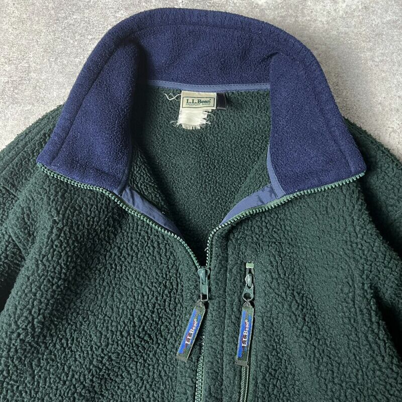 90s LLBean フルジップ パイル フリース ジャケット / 90年代 エルエルビーン オールド グリーン カタディン