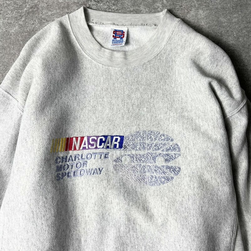 90s USA製 RUGGED SWEATS NASCAR ロゴ 刺繍 RWタイプ スウェット トレーナー M / 90年代 アメリカ製 リバース ナスカー
