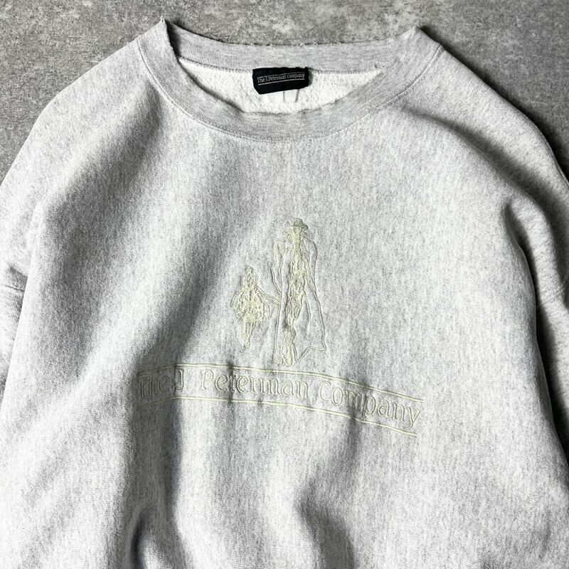 90s The J.Peterman Company ビッグ ロゴ 刺繍 RWタイプ スウェット トレーナー / 90年代 オールド リバース 企業 グレー