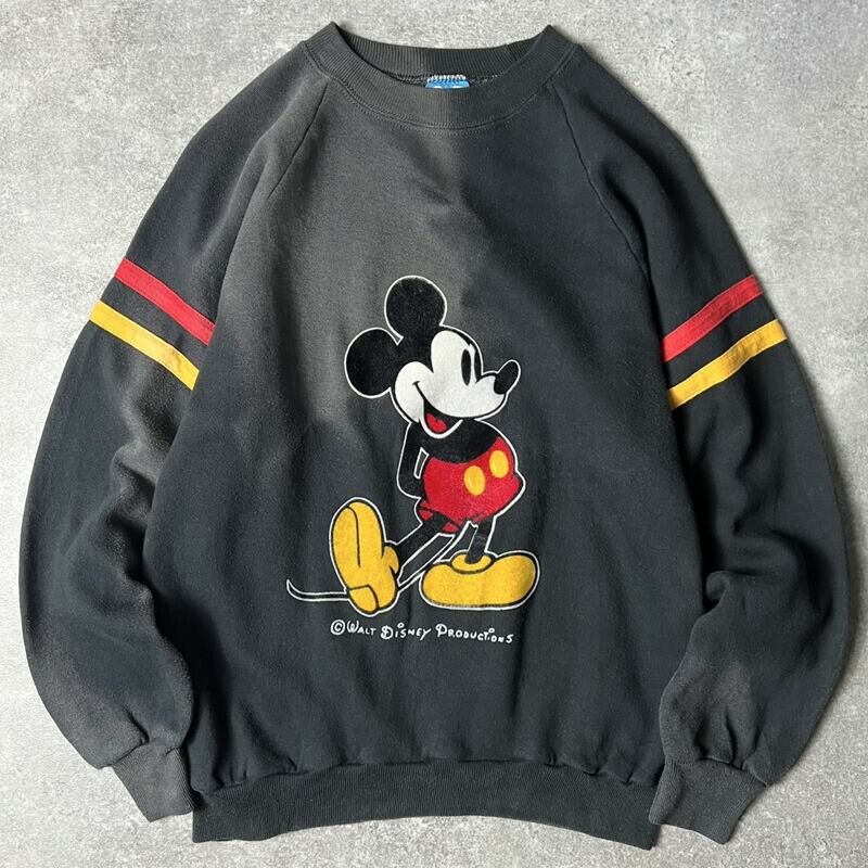 雰囲気系 80s USA製 ディズニー オフィシャル ミッキー フロッキー プリント スウェット トレーナー M / 80年代 ビンテージ