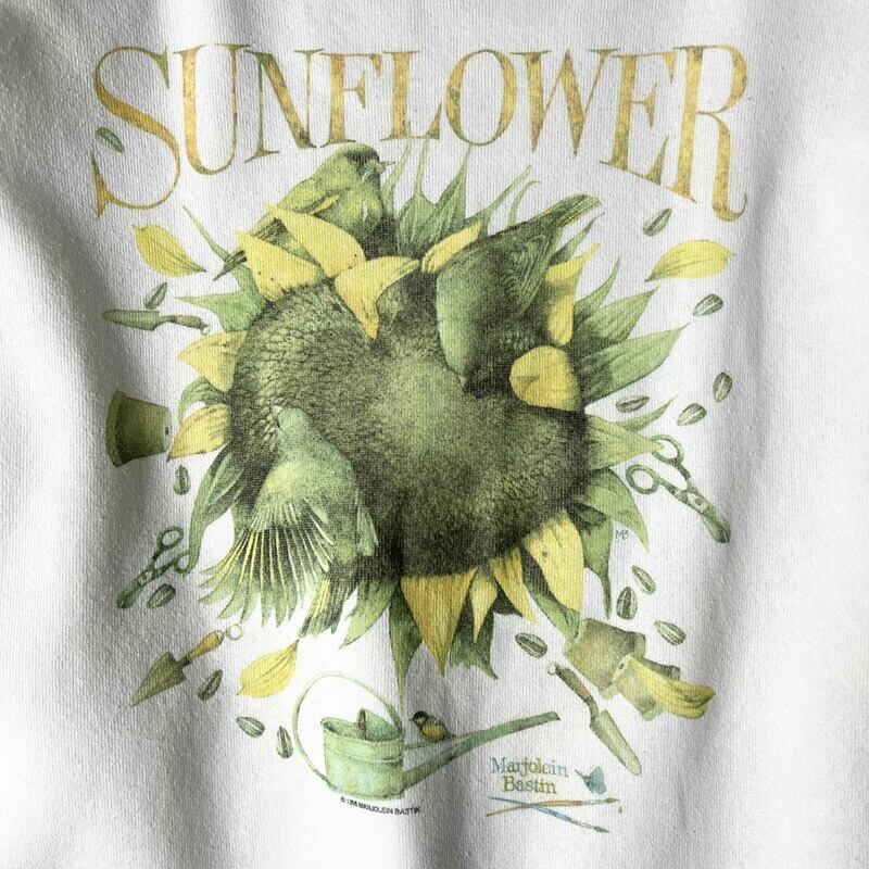 90s ヒマワリ アート プリント スウェット トレーナー / 90年代 オールド アート 花 白 ホワイト スエット
