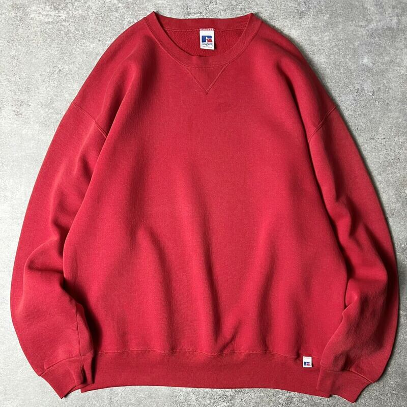 90s RUSSELL 無地 前V スウェット トレーナー XL / 90年代 オールド ラッセル 裏起毛 レッド 赤 スエット