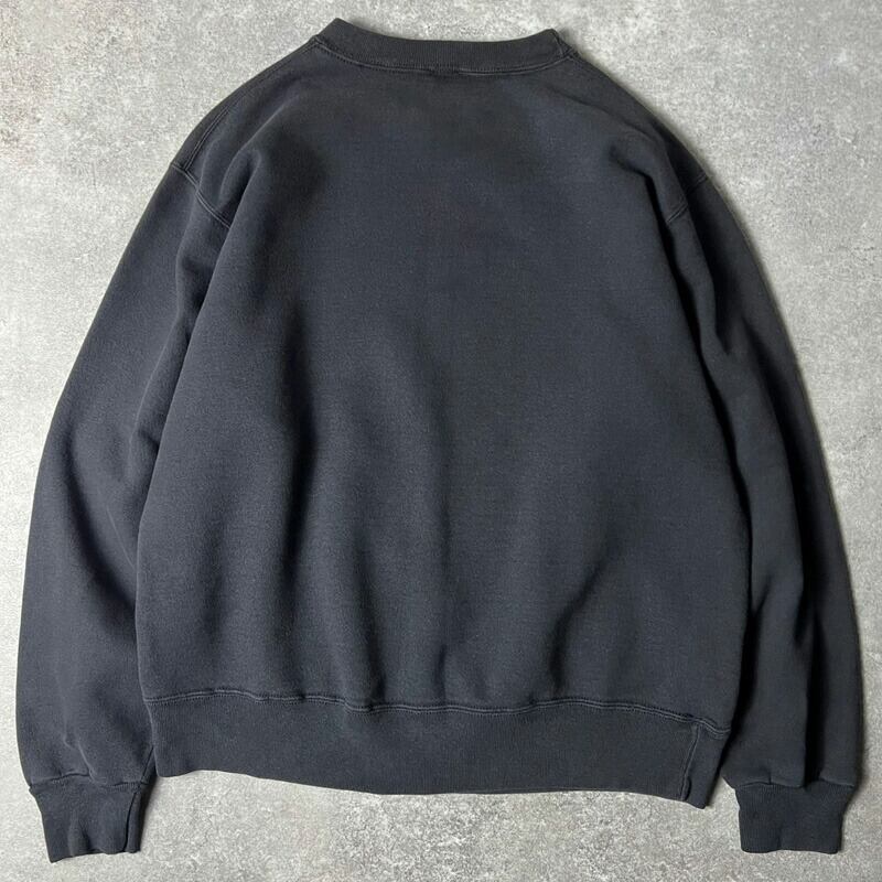 90s Champion ロゴ刺繍 前V スウェット トレーナー / 90年代 チャンピオン スクリプト ロゴ ブラック 黒