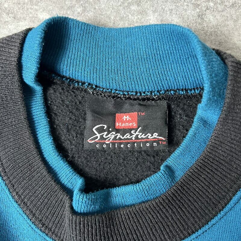 90s HANES 2トーン 切替 スウェット トレーナー / 90年代 オールド ブルー ブラック 青 黒 ヘインズ バイカラー