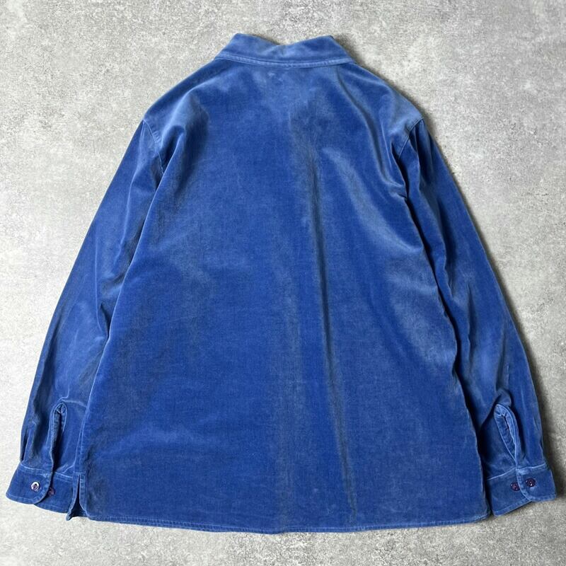 LLBean 無地 コットン ベロア シャツ M / LLビーン エルエルビーン 別珍 ボックス シャツジャケット ブルー