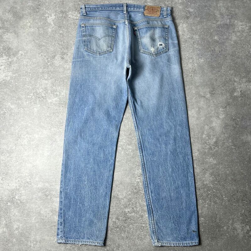 ヒゲ 90s USA製 Levis 501 ストレート クラッシュ デニム パンツ 36 / 90年代 アメリカ製 オールド リーバイス ジーンズ 脇割り