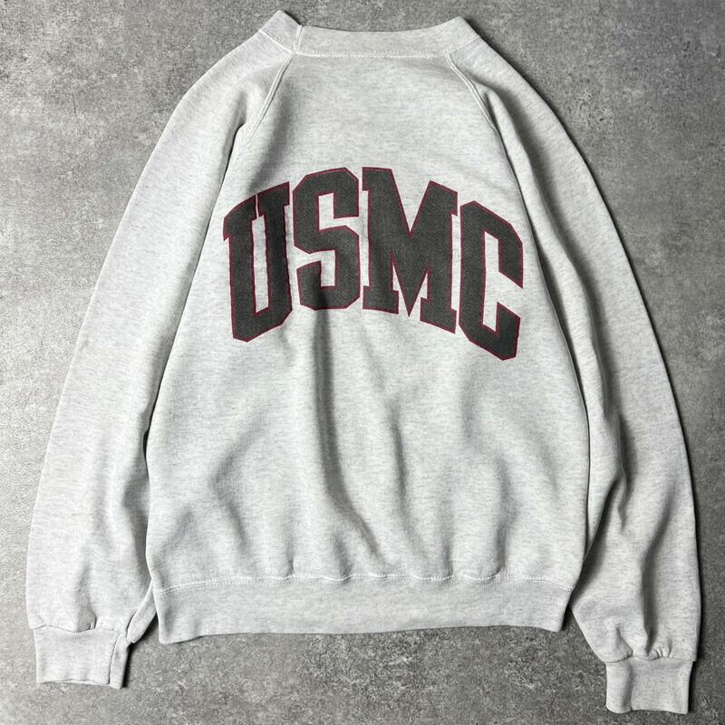 80s USA製 USMC ロゴ 両面 プリント スウェット トレーナー M / 80年代 SOFFE アメリカ製 ビンテージ 霜降り グレー ミリタリー