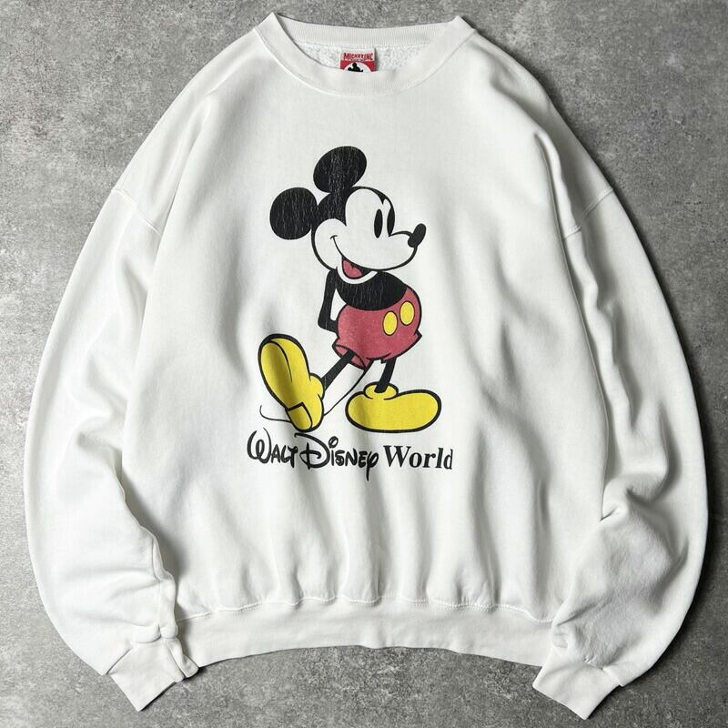 90s USA製 ディズニー オフィシャル ミッキー プリント スウェット トレーナー XL / 90年代 アメリカ製 オールド キャラクター ホワイト