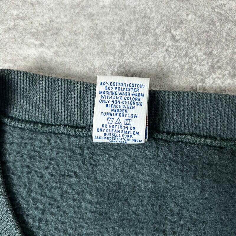 90s RUSSELL 無地 前V スウェット トレーナー XL / 90年代 オールド ラッセル 裏起毛 グリーン 緑 スエット