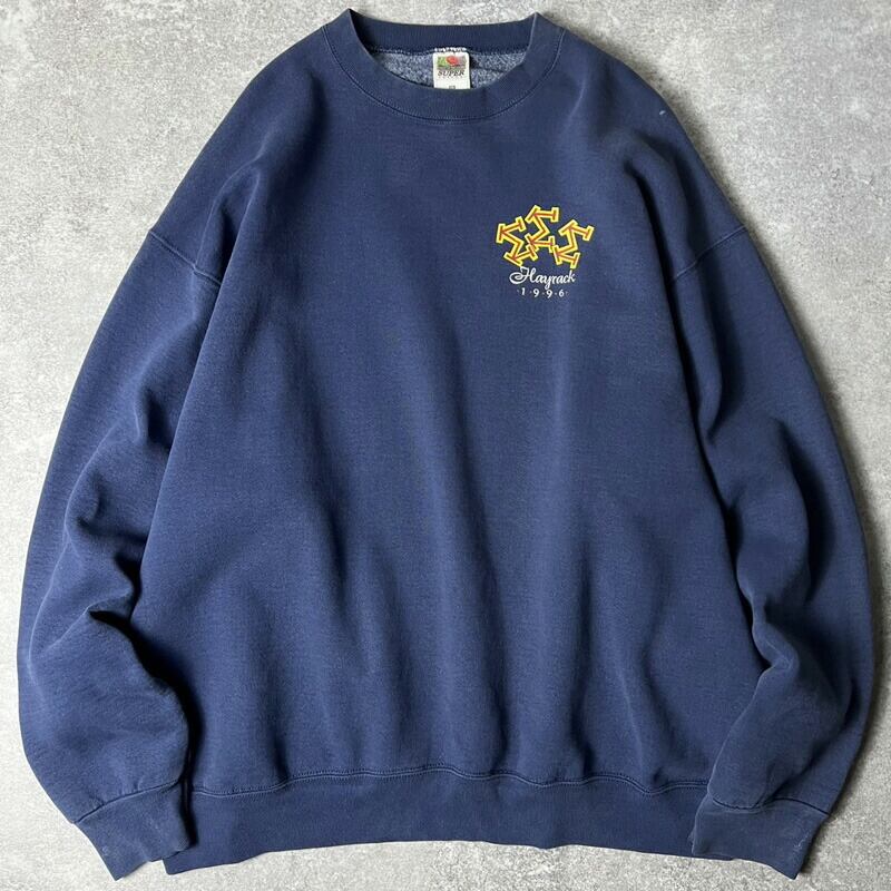 90s USA製 両面 カレッジ プリント スウェット トレーナー XXL / 90年代 アメリカ製 オールド ネイビー 紺 フルーツ