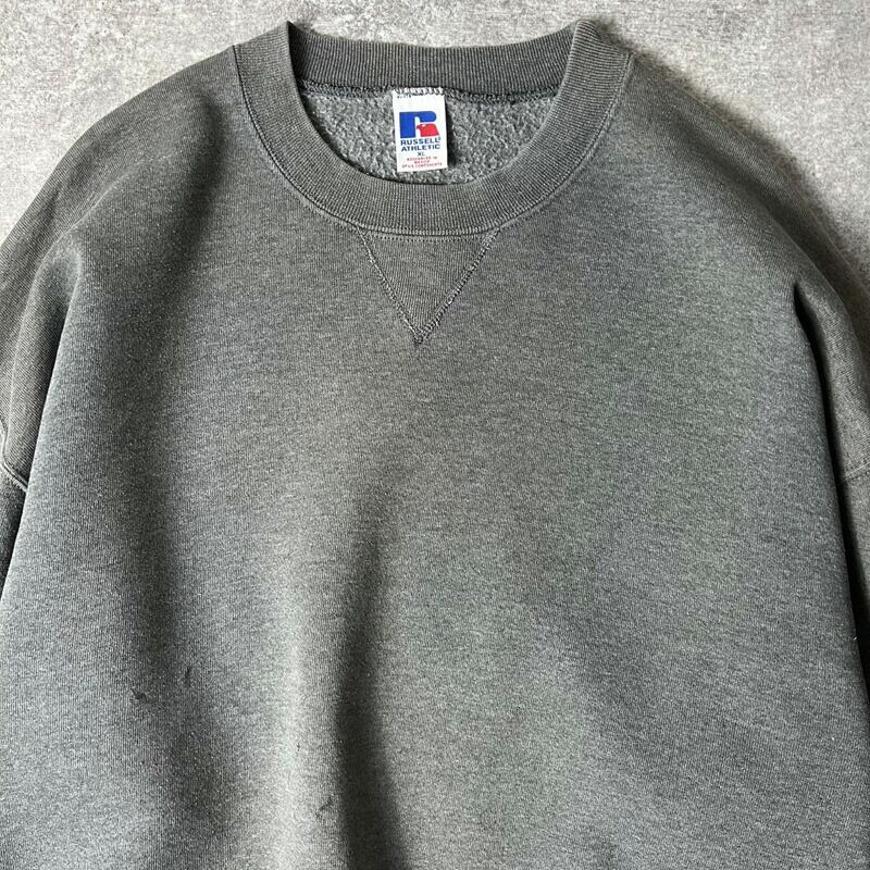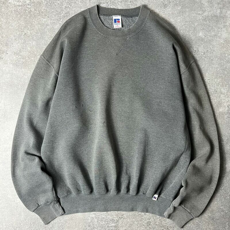 雰囲気系 90s RUSSELL 無地 前V スウェット トレーナー XL / 90年代 オールド ラッセル 裏起毛 グレー フェード スエット