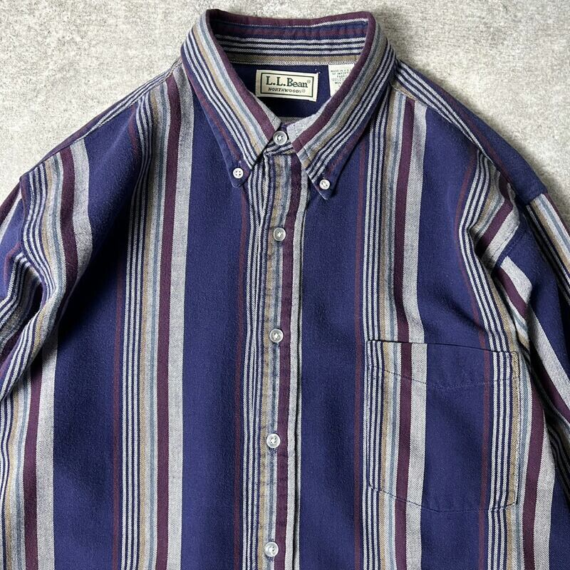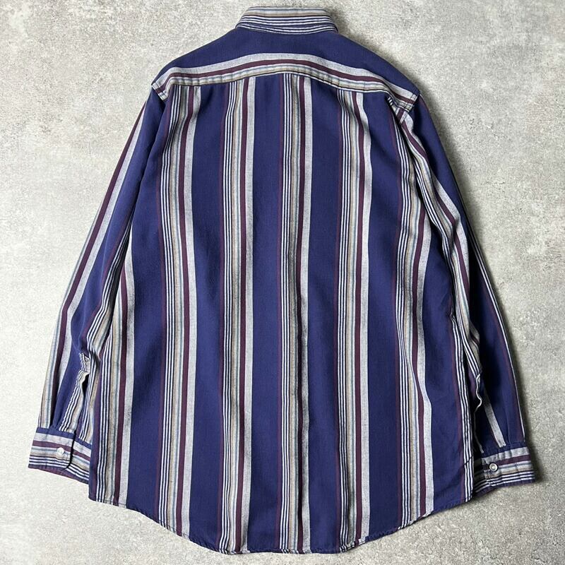 80s USA製 LLBean マルチカラー ストライプ 長袖 コットン ボタンダウン シャツ L / 80年代 アメリカ製 ビンテージ エルエルビーン LLビーン