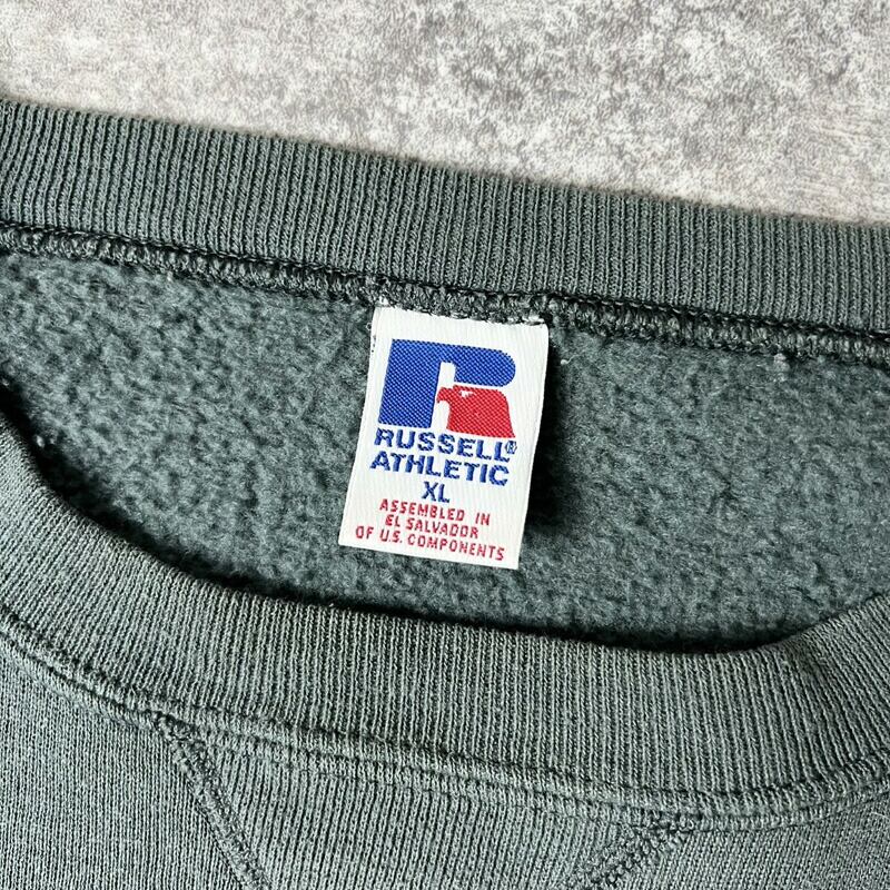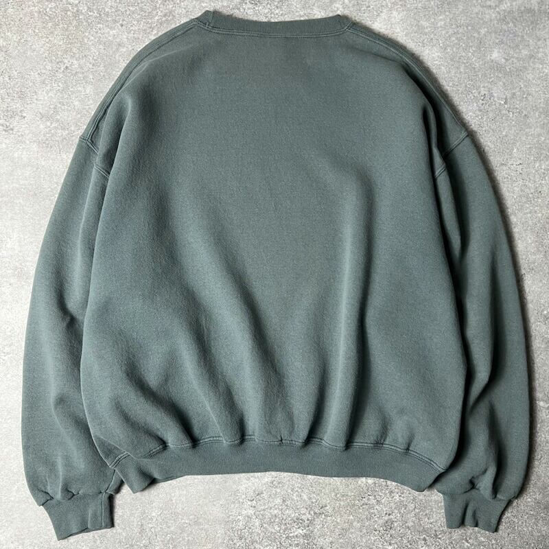 90s RUSSELL 無地 前V スウェット トレーナー XL / 90年代 オールド ラッセル 裏起毛 グリーン スエット