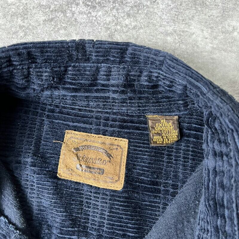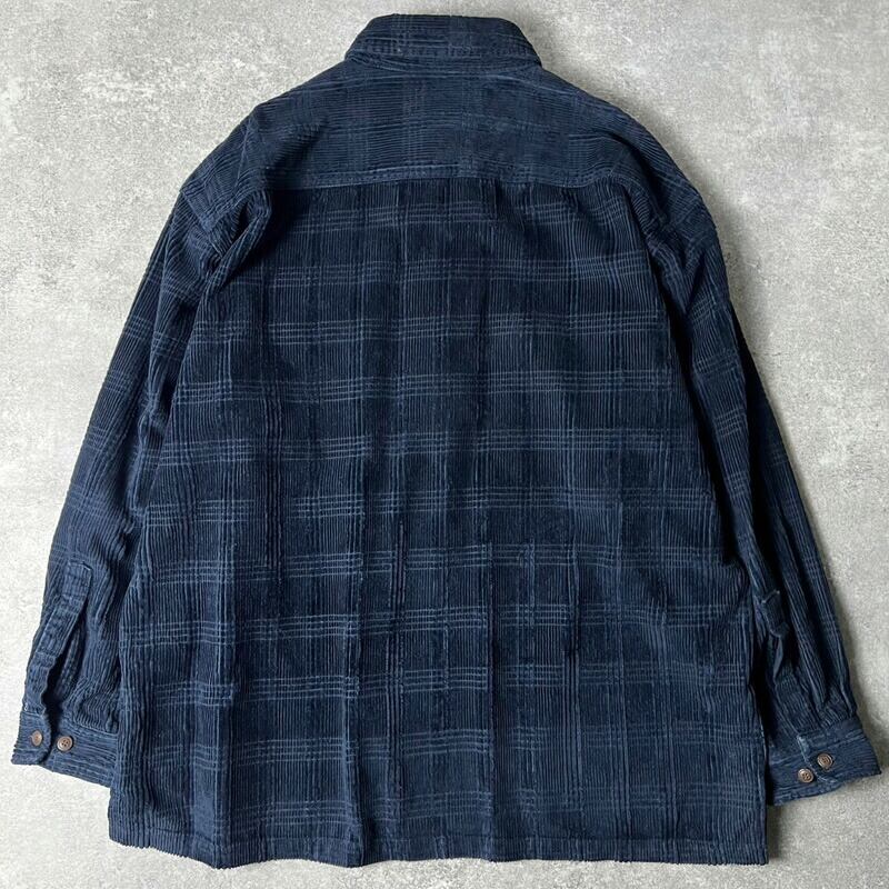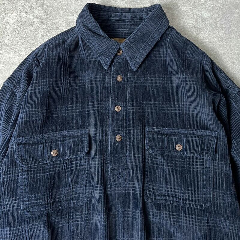 90s ST JOHN'S BAY 長袖 太畝 コーデュロイ プルオーバー シャツ XL / 90年代 オールド JCPenney JCペニー 無地 紺 ボックス