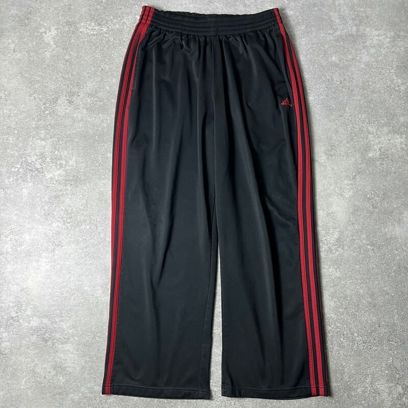 00s adidas 3ストライプ ジャージ パンツ L / 00年代 オールド アディダス パフォーマンス ロゴ ワイド 黒 赤
