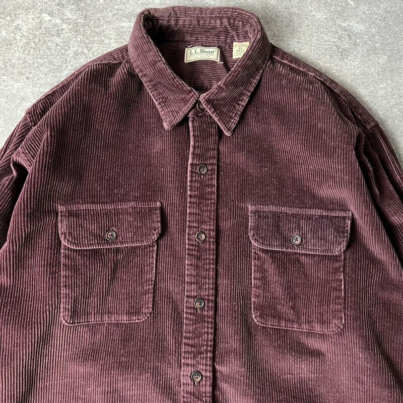 80s USA製 LLBean 長袖 太畝 コーデュロイ シャツ XL / 80年代 アメリカ製 ビンテージ エルエルビーン 無地 LLビーン