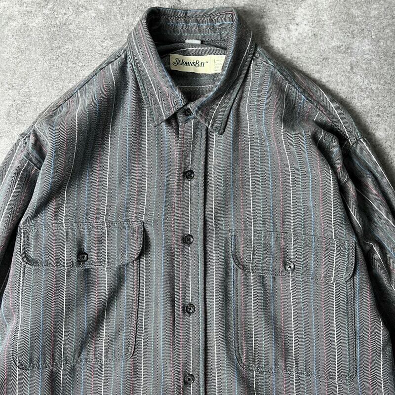 90s USA製 ST JOHN'S BAY ストライプ コットン ヘリンボーン 長袖 シャツ L / 90年代 アメリカ製 オールド JCPenney JCペニー