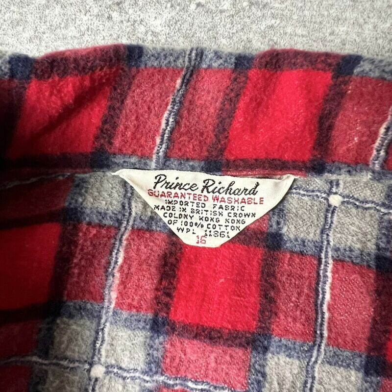 60s Prince Richard コットン チェック プリント フランネル 長袖 オープンカラー シャツ 16 / 60年代 ビンテージ ボックス 開襟 ネルシャツ