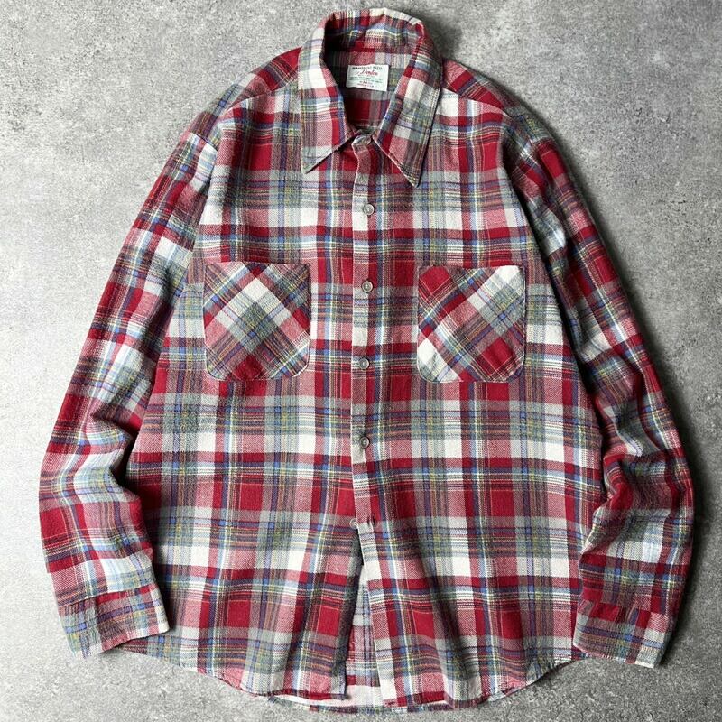 70s USA製 Donlin チェック 長袖 プリント フランネル シャツ M / 70年代 ビンテージ アメリカ製 ネルシャツ マルチカラー