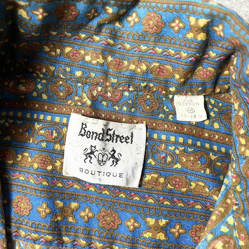 70s Bond Street ペイズリー 総柄 長袖 コットン シャツ M / 70年代 ビンテージ マルチカラー 柄シャツ