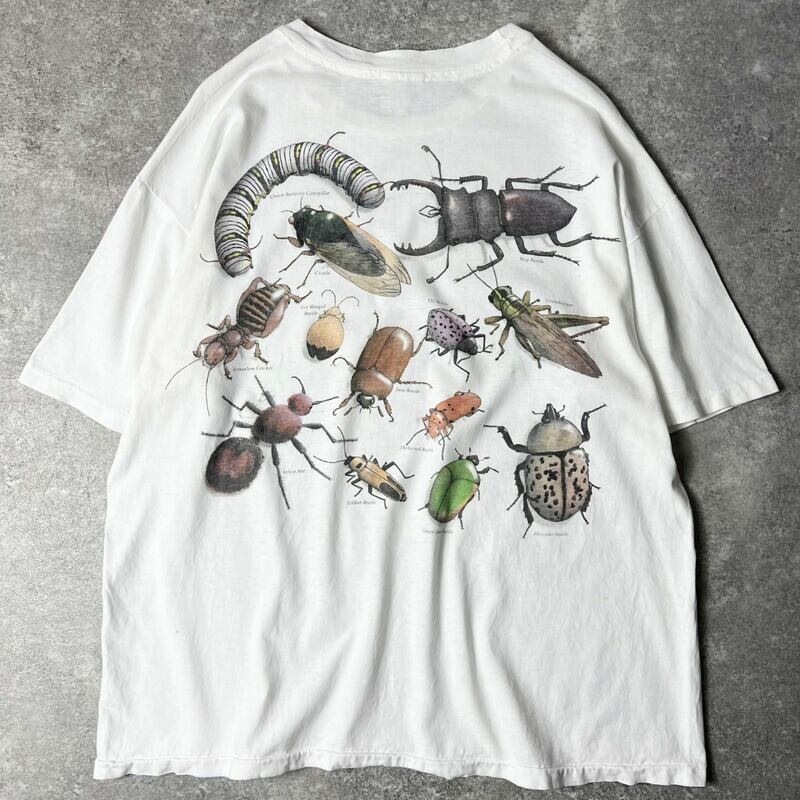 90s USA製 昆虫 総柄 アート プリント 半袖 Tシャツ XL / 90年代 アメリカ製 オールド 虫 シングル ステッチ 白