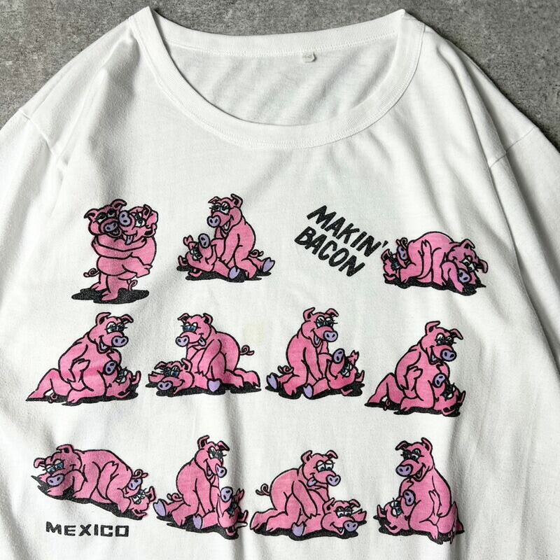 90s ブタ 四十八手 総柄 プリント 半袖 Tシャツ 44 / 90年代 オールド 48手 豚 エロT ジョーク シングル ステッチ