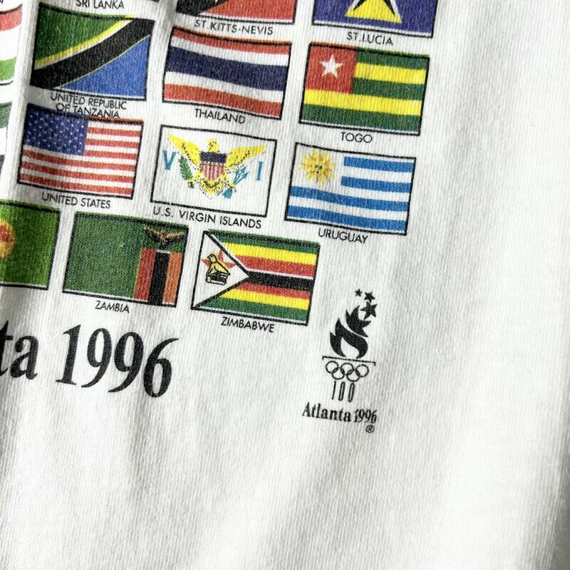 90s 1996 アトランタ オリンピック オフィシャル 3面 プリント 半袖 Tシャツ / 90年代 オールド シングル ステッチ 五輪 国旗 ホワイト
