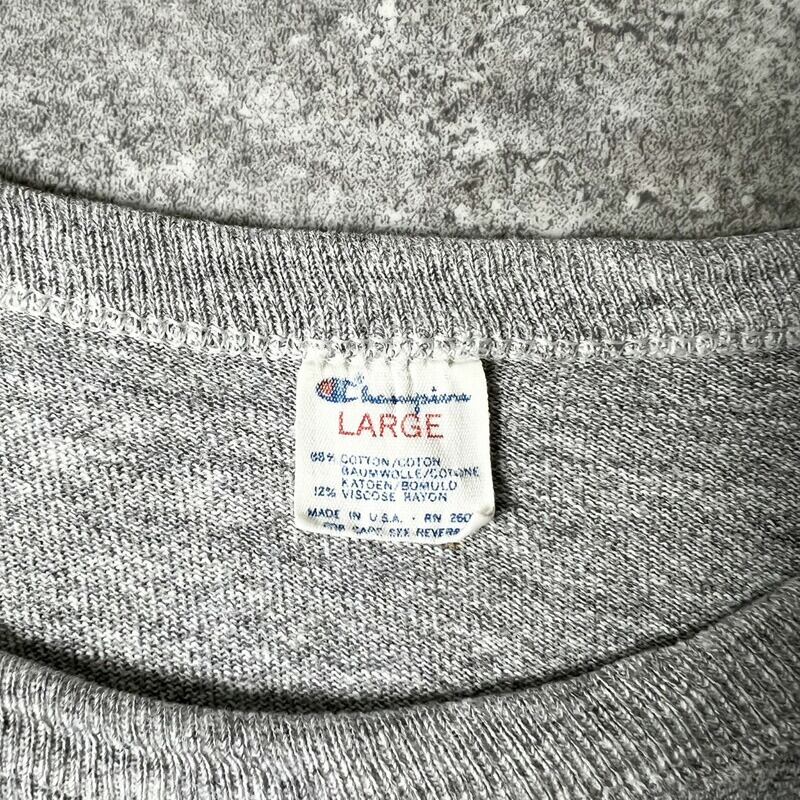 雰囲気系 80s USA製 Champion 88/12 3段 カレッジ プリント 半袖 Tシャツ L / 80年代 アメリカ製 チャンピオン ビンテージ 霜降り グレー 襤褸