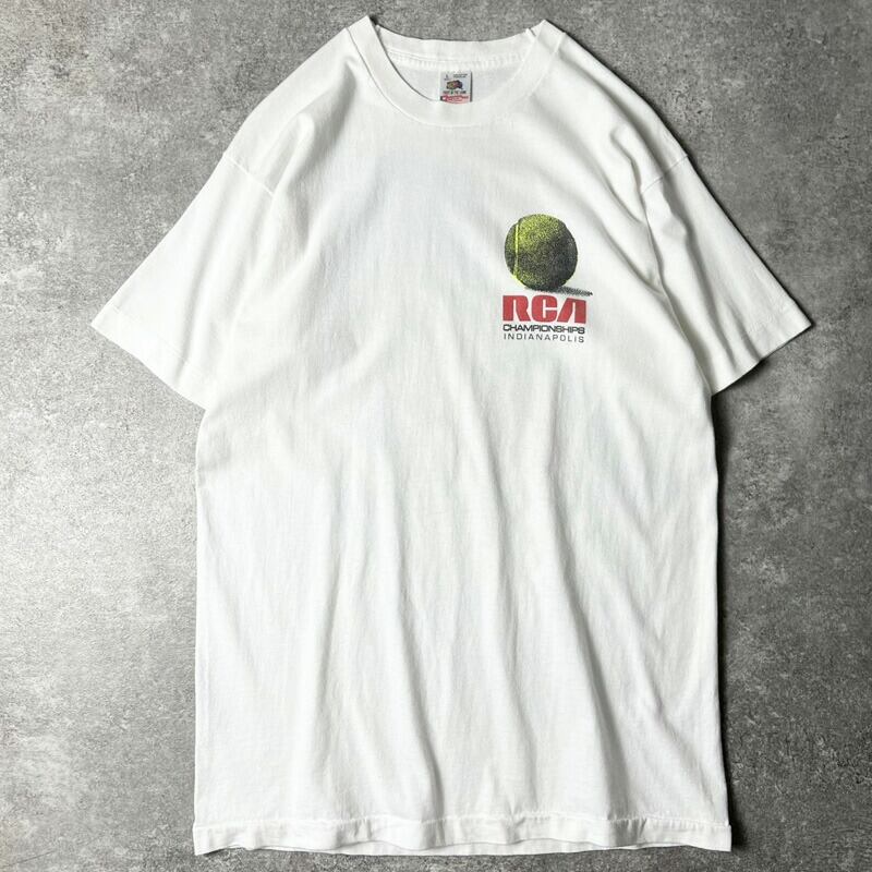 90s USA製 BIG DOGS 1994 RCA テニス 両面 プリント 半袖 Tシャツ L / 90年代 アメリカ製 オールド シングル ステッチ ホワイト 白