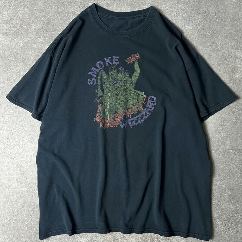 雰囲気系 Smoke Wizzzard プリント 半袖 Tシャツ / ブラック 黒 メタル バンド バンドT ロック ロックT アルバム